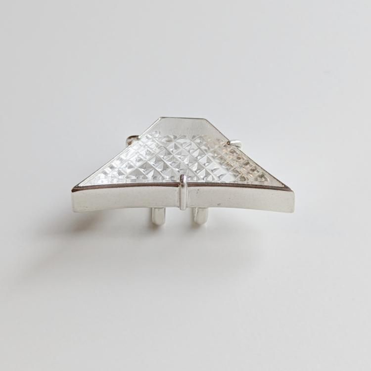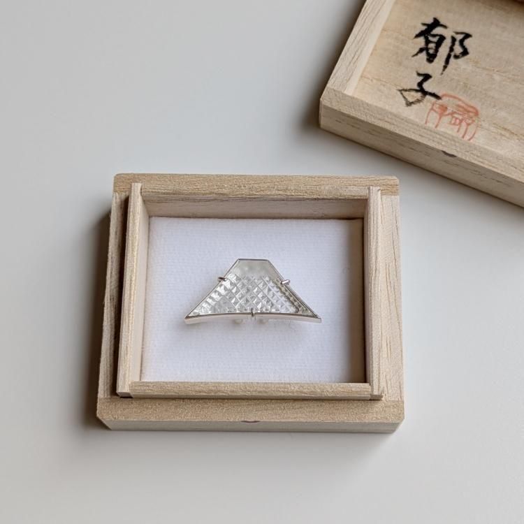切子帯留(富士山・魚々子・クリア) 小川郁子