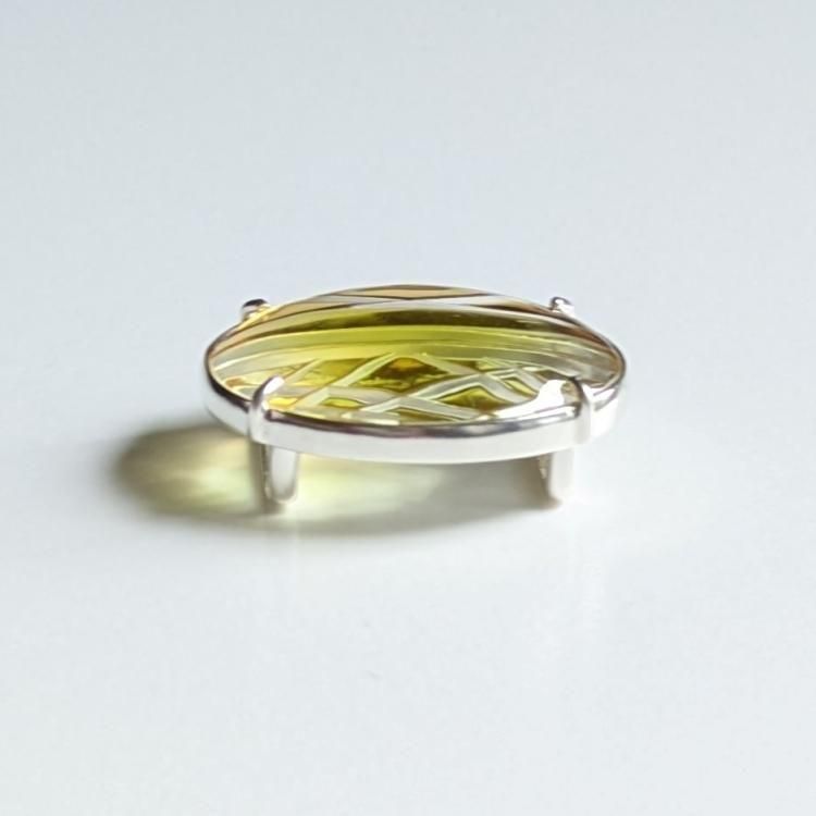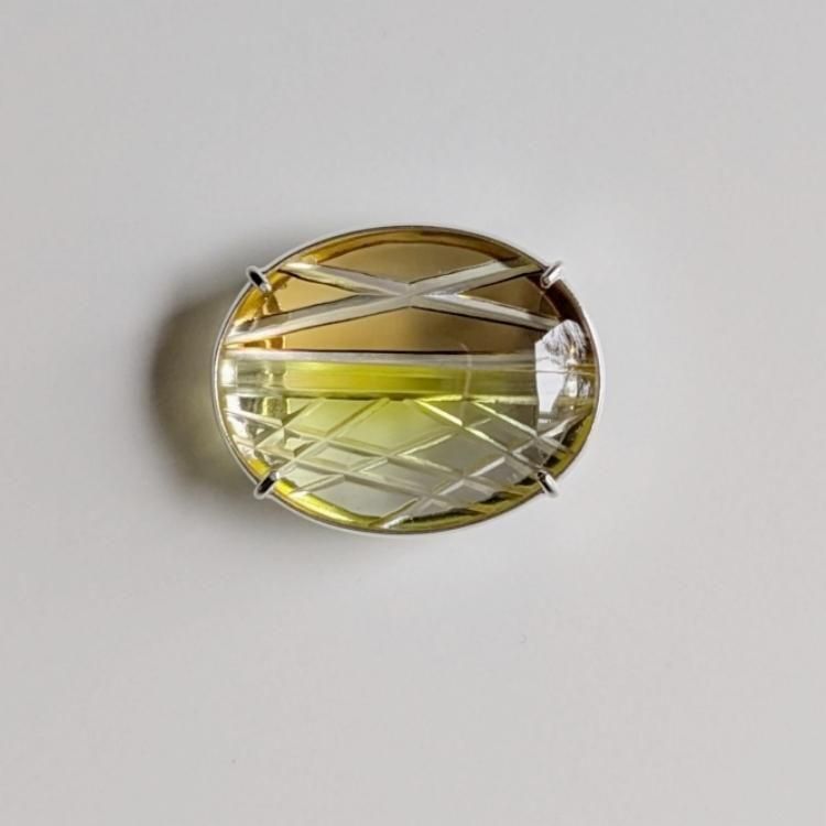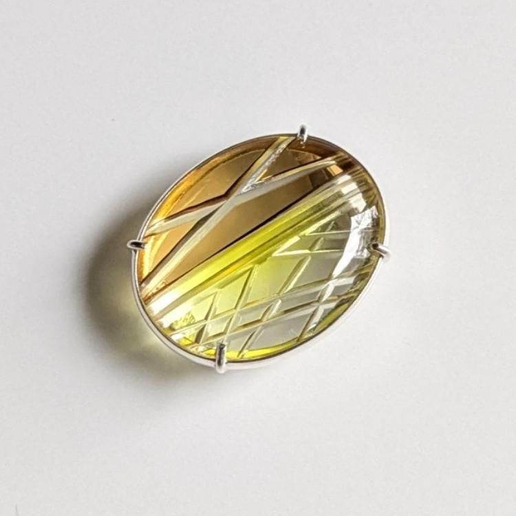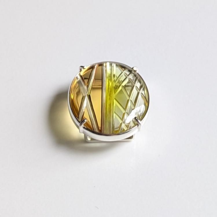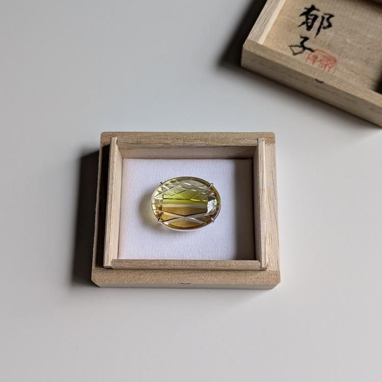 二色の帯留(だ円・すじとすじ・黄とアンバー) 小川郁子
