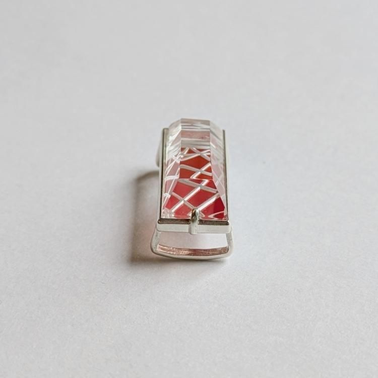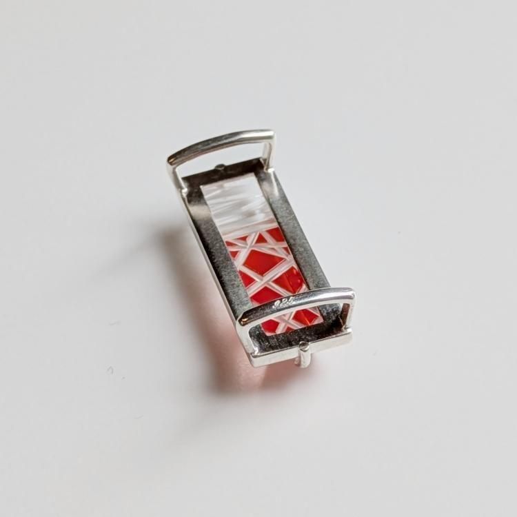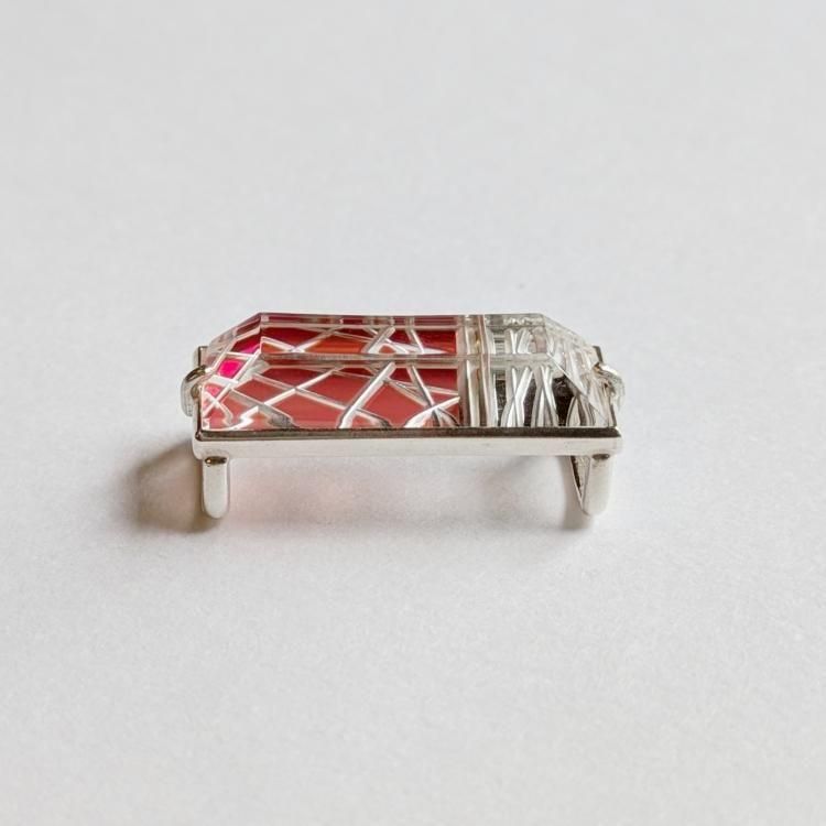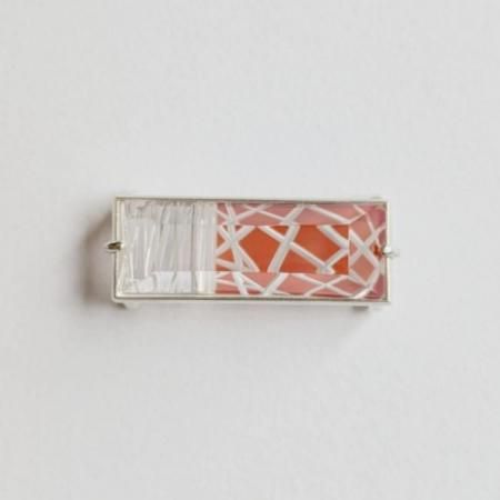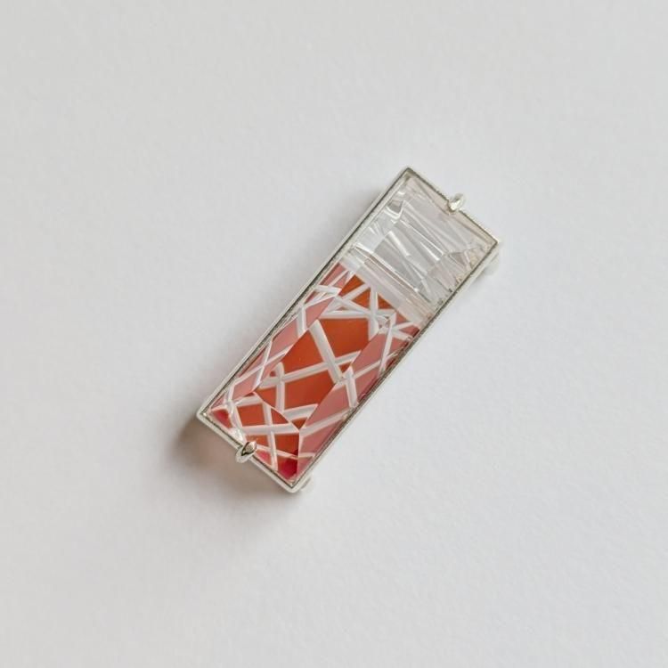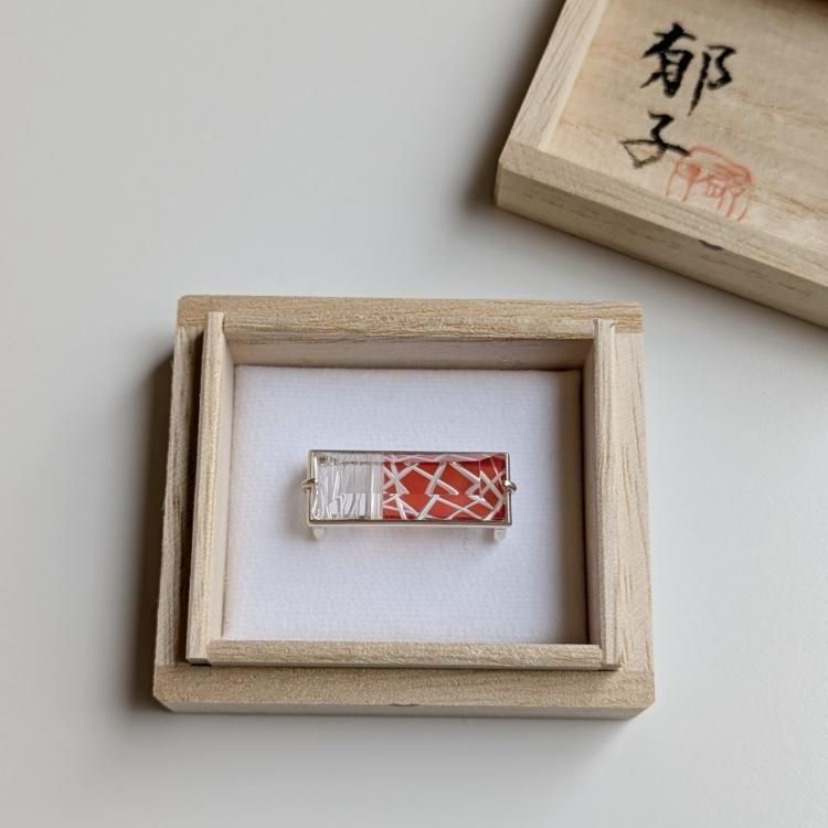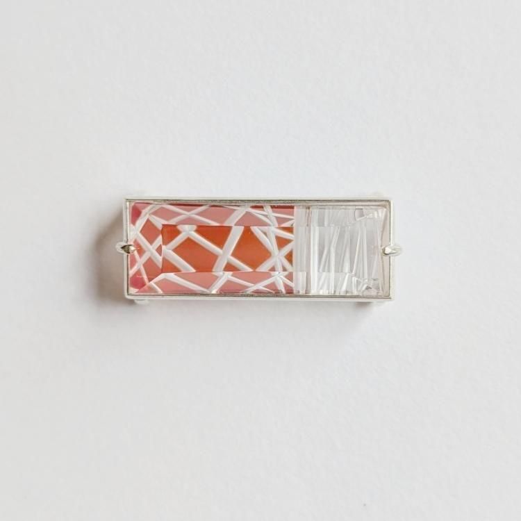 二色の帯留(長四角・すじとすじ・クリアとレンガ) 小川郁子