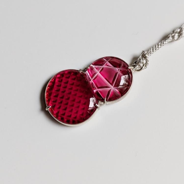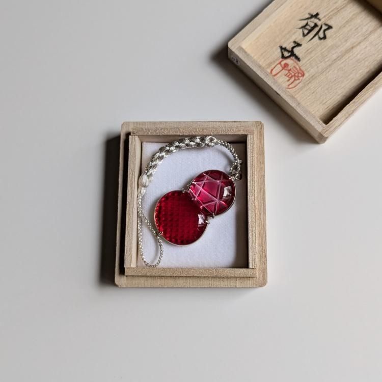 切子根付(ひょうたん・金赤と赤) 小川郁子